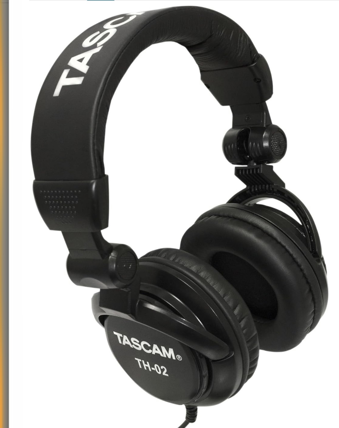 TASCAM TH-02 Professional Studio Monitor Headphones, Wired, Over Ear — for Recording, Podcast, DJ, Music and Guitar, with 1/4 Inch Jack Adapter